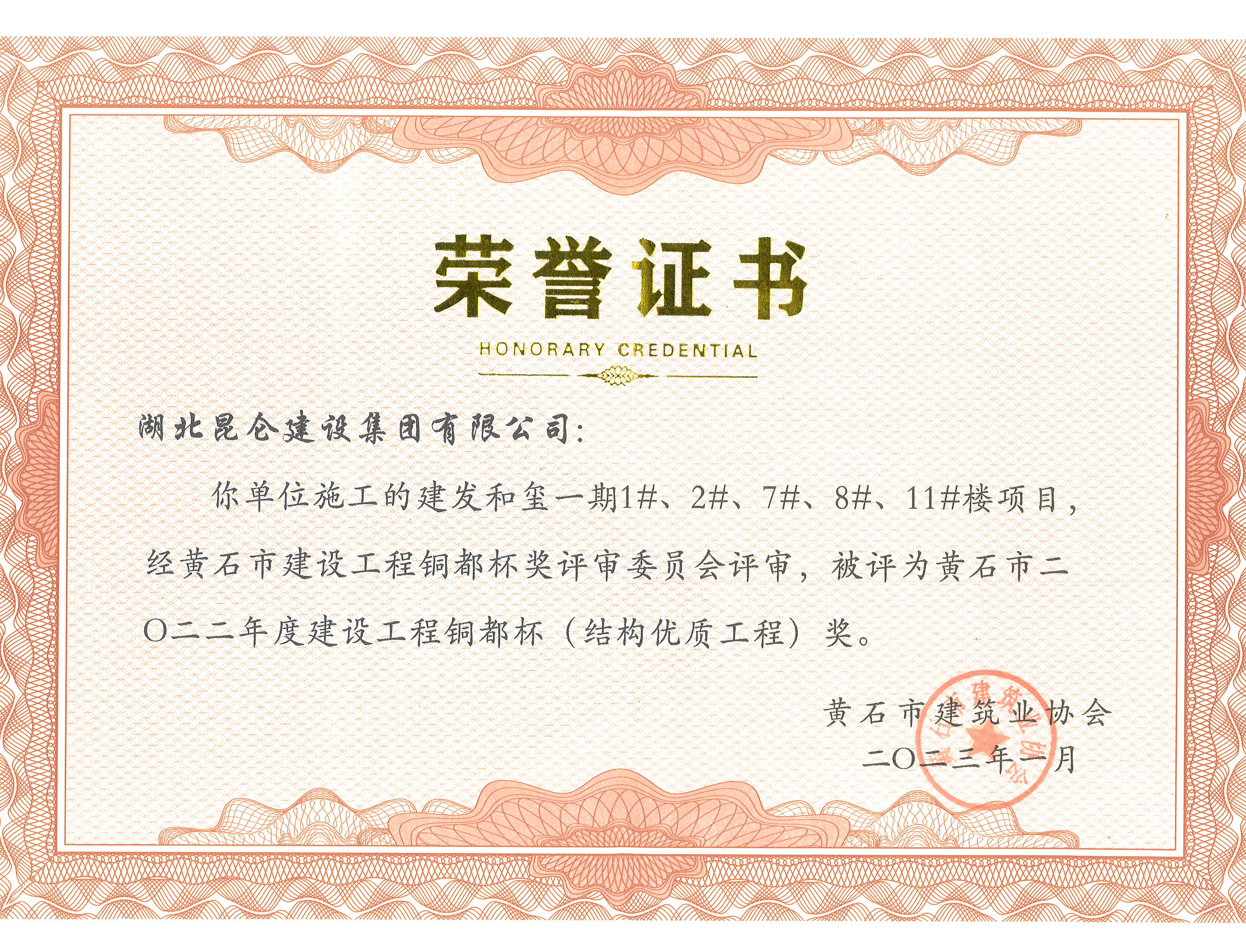 • 建發集團2022年度優秀施工獎